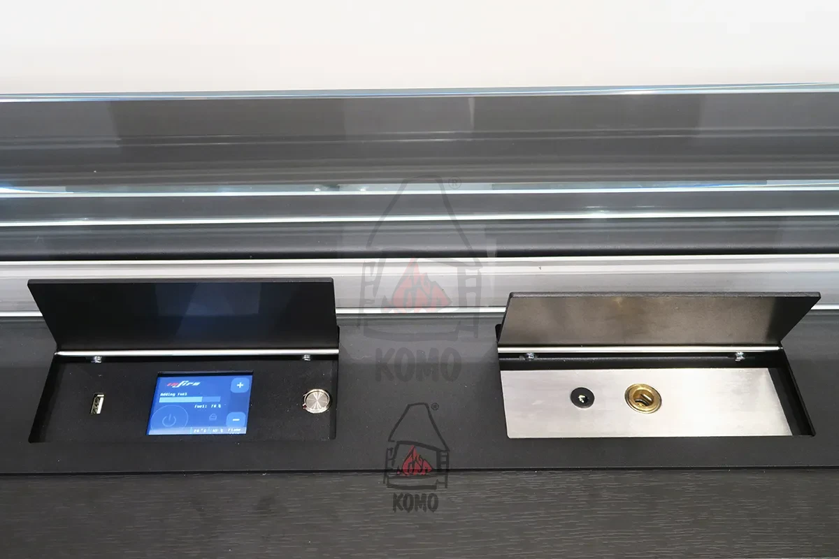 Bezpieczne użytkowanie biokominka zapewnia także rozbudowany system czujników bezpieczeństwa a możliwość sterowania poprzez ekran dotykowy na obudowie palnika lub pilota zdalnego sterowania - łatwą i wygodną obsługę.