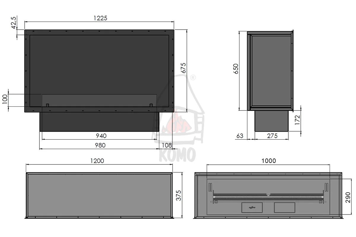 | Zawartość opakowania | palnik, stalowa obudowa biokominka, szyba ochronna, pompa do biopaliwa, rączki do wyciągania palnika, instrukcja/gwarancja, pilot |