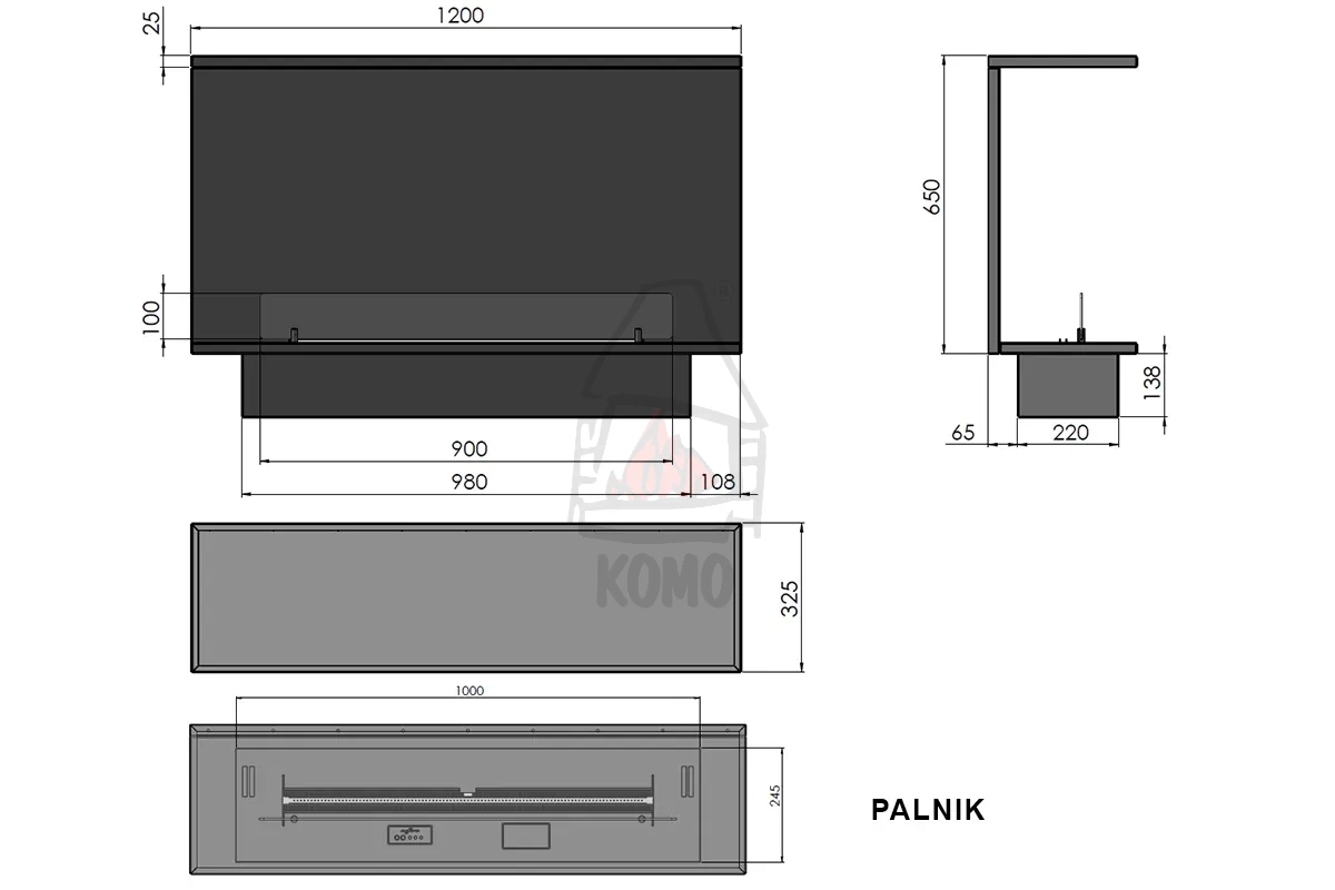 | Zawartość opakowania | palnik, stalowa obudowa biokominka, szyba ochronna, pompa do biopaliwa, rączki do wyciągania palnika, instrukcja/gwarancja, pilot (opcjonalnie) |