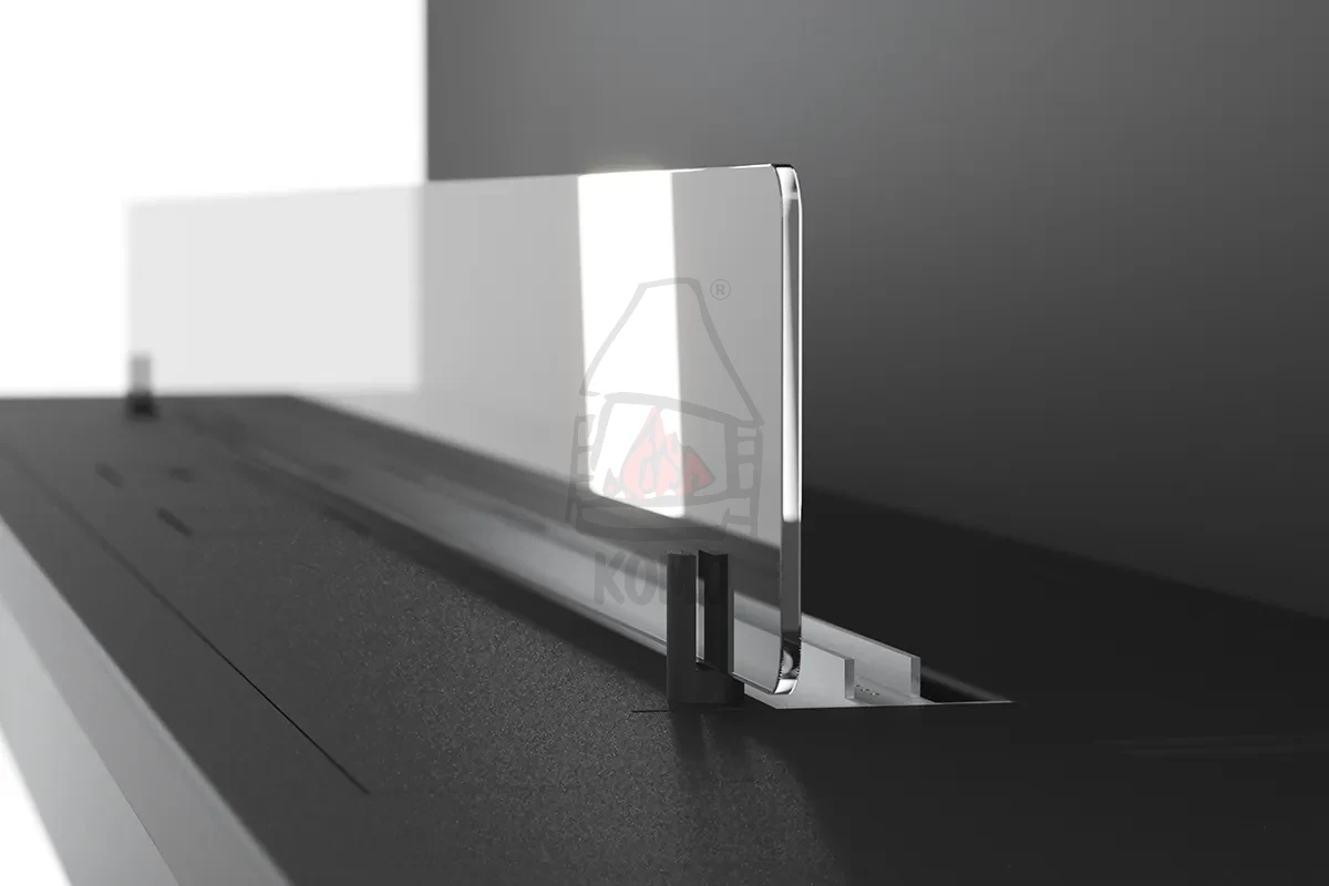 Każdy biokominek z serii INFIRE ETRONIC BASIC C jest standardowo wyposażony w 1 szybę ochronną wykonaną z hartowanego szkła Antisol o grubości 4 mm i zaokrąglonych narożnikach. W modelu ETRONIC BASIC C 1800 szyba o wymiarach 140×10 cm ma za zadanie: