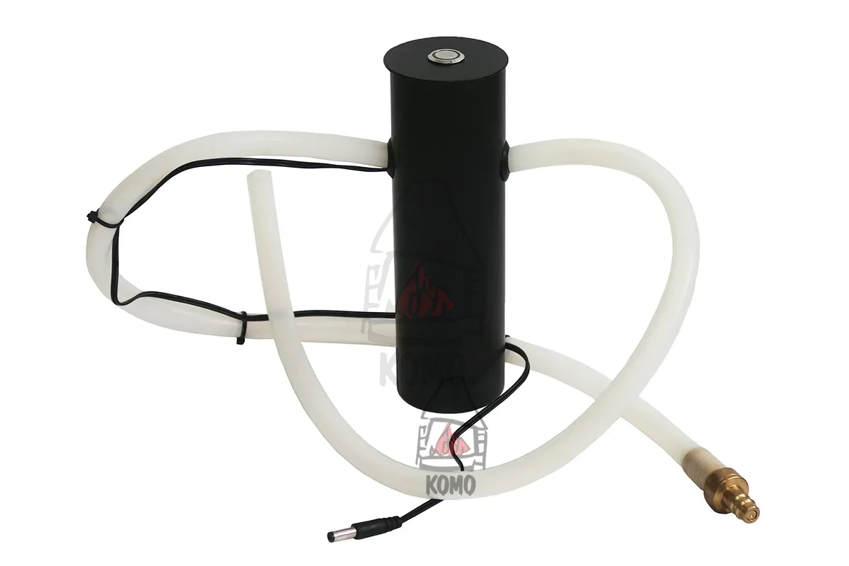 Aby napełnić zbiornik bioetanolem należy włożyć biały wąż do kanistra z bioetanolem, wetknąć mosiężną końcówkę i kabel zasilający w odpowiednie otwory na panelu tankowania oraz nacisnąć przycisk zasilania na pompce. Proces tankowania jest kontrolowany przez system czujników, a pompa automatycznie zatrzymuje się w momencie osiągnięcia maksymalnego poziomu paliwa w zbiorniku. Takie rozwiązanie znacząco zwiększa komfort użytkowania oraz eliminuje ryzyko przelania paliwa.