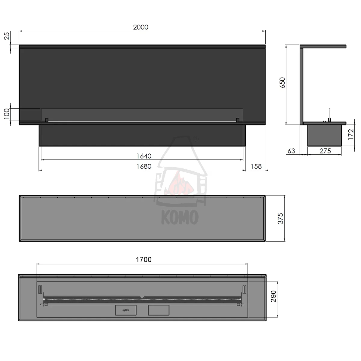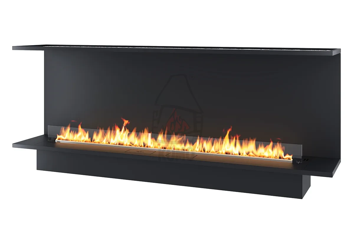 Biokominek trójstronny INFIRE ETRONIC C 2000, o wymiarach całkowitych 200×83,5×37,5 cm, jest przystosowany do zabudowy, np. w ściance działowej. Obudowa wykonana ze stali polakierowanej proszkowo na kolor czarny nie tylko upraszcza proces instalacji, ale także gwarantuje elegancki wygląd. Dodatkowym atutem jest zastosowana izolacja, która zabezpiecza powierzchnie znajdujące się wokół biokominka.