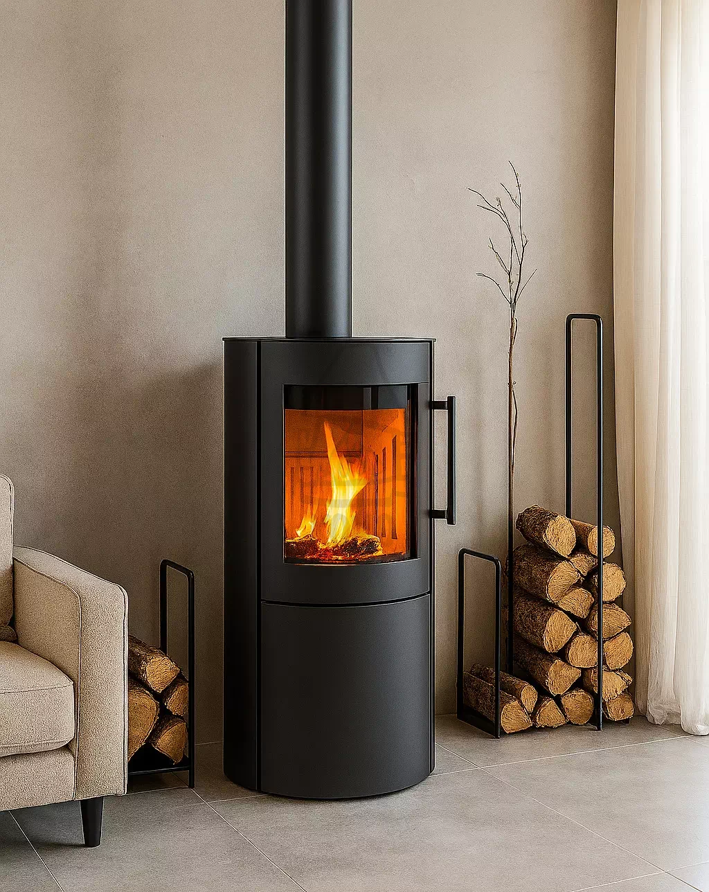Piecyk został wyposażony w regulator płynnego sterowania intensywnością palenia oraz szczelny dopływ powietrza zewnętrznego, co umożliwia niezakłóconą jego pracę w domach z wentylacją mechaniczną.
