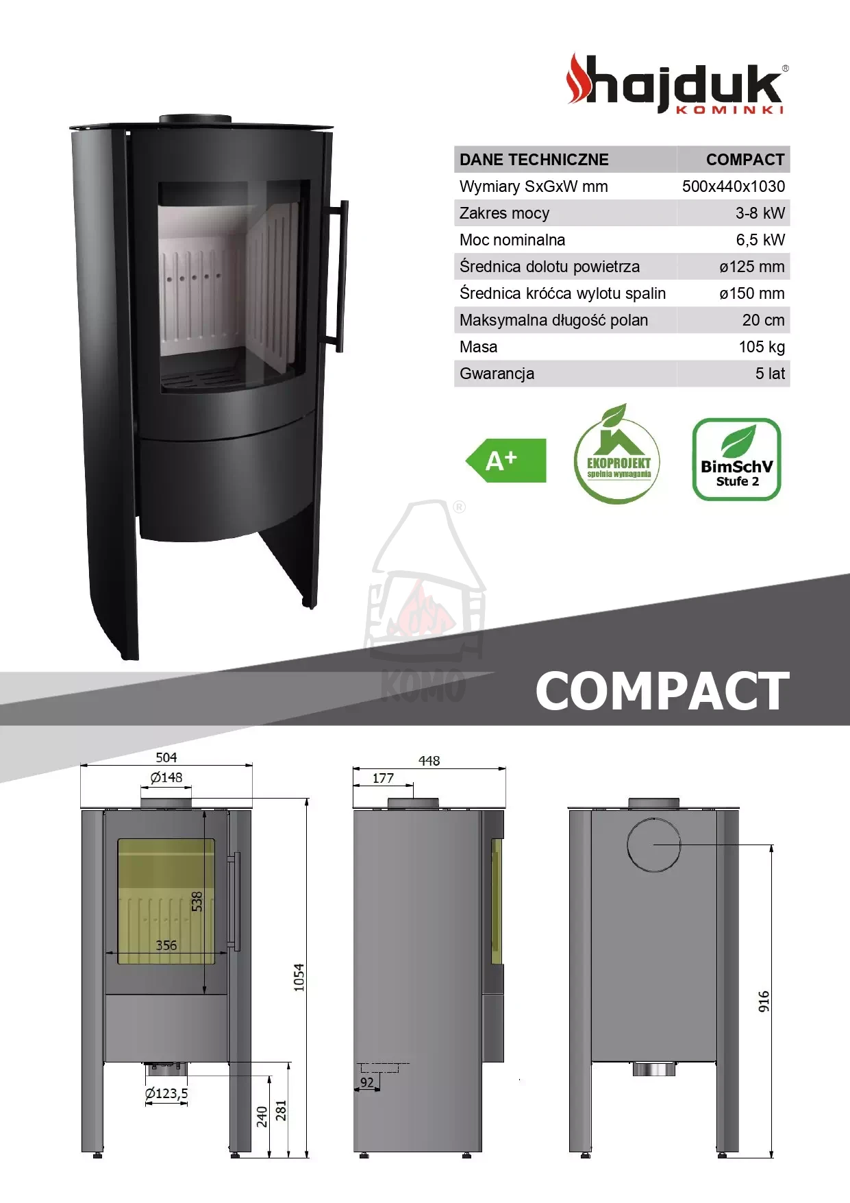Piec wolnostojący HAJDUK COMPACT