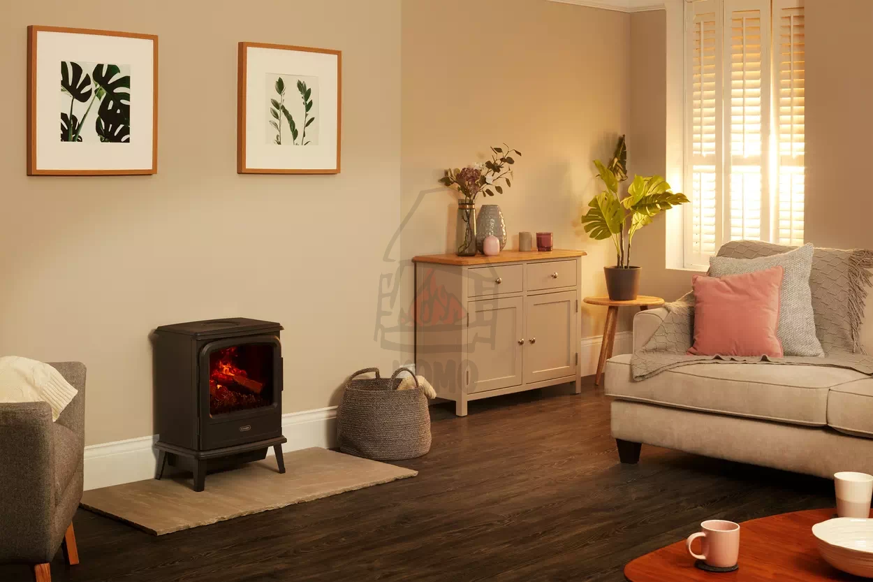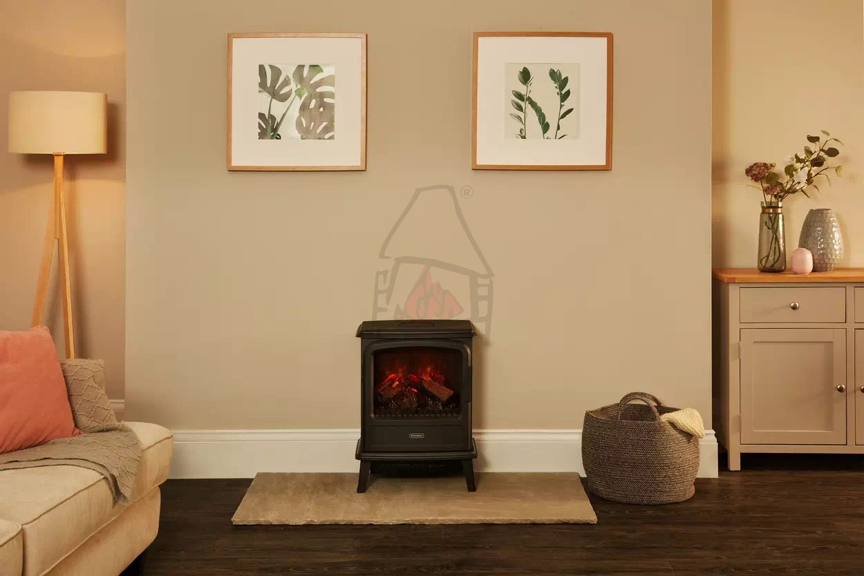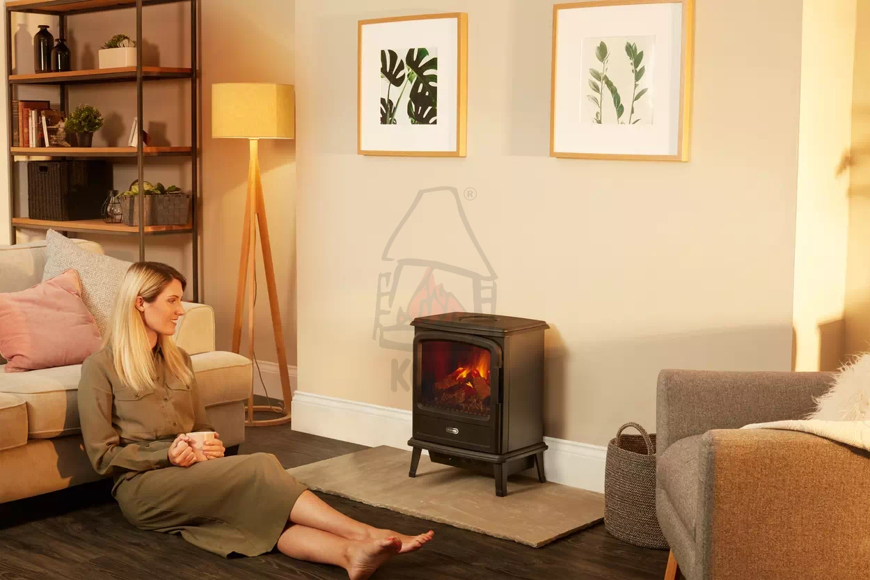 DIMPLEX EVANDALE BLACK to niewielkich rozmiarów kominek elektryczny z obudową w kolorze czarnym, nawiązujący wzornictwem do klasycznych piecyków typu koza. Model ten wyposażony jest w opcjonalną funkcję grzania, która w chłodniejsze dni i wieczory wypełnia wnętrze przyjemnym ciepłem. Dzięki wykorzystaniu opatentowanej technologii ognia Optimyst®, kominek kreuje realistyczny, trójwymiarowy obraz płomieni oraz dymu, zapewniając wyjątkowe wrażenia wizualne. Dostępny w trzech kolorach Evandale nie tylko dopełni estetycznie każdą przestrzeń, lecz także doda jej subtelnego uroku.