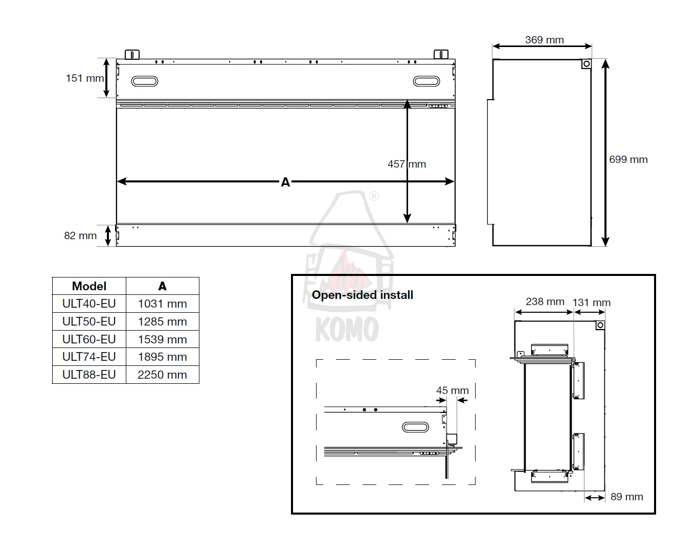 | Model kominka elektrycznego | IGNITE ULTRA 74 |