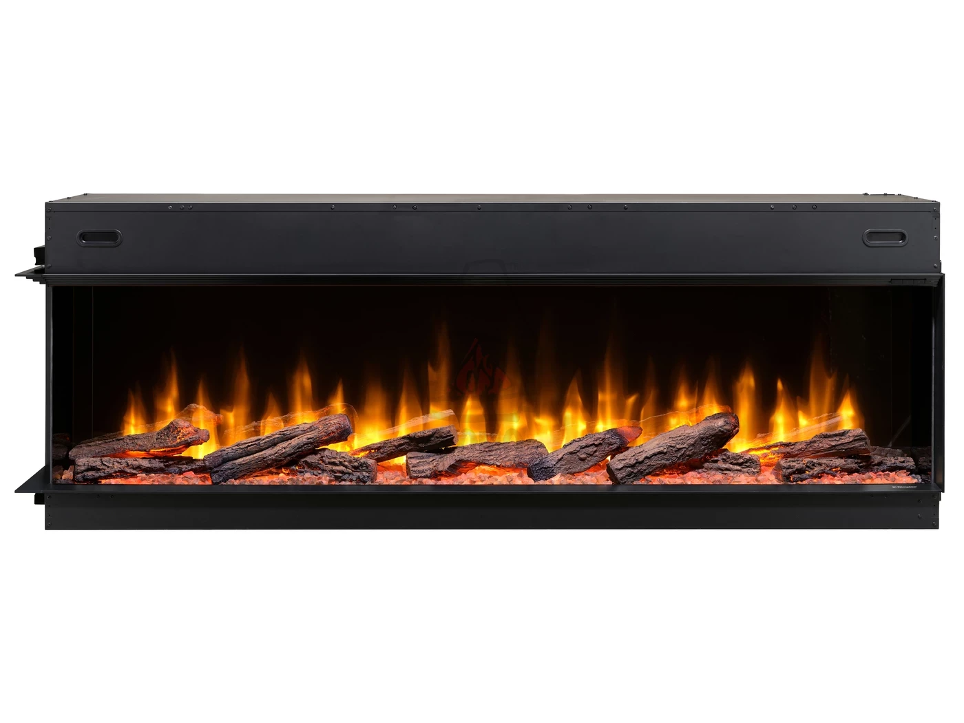 - Niczym niezakłócony obraz płomieni dzięki bezramowej obudowie kominka.