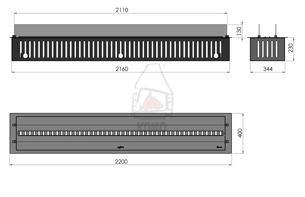 | Wymiary paleniska (szer. x wys.) | 1990 x 45 mm |