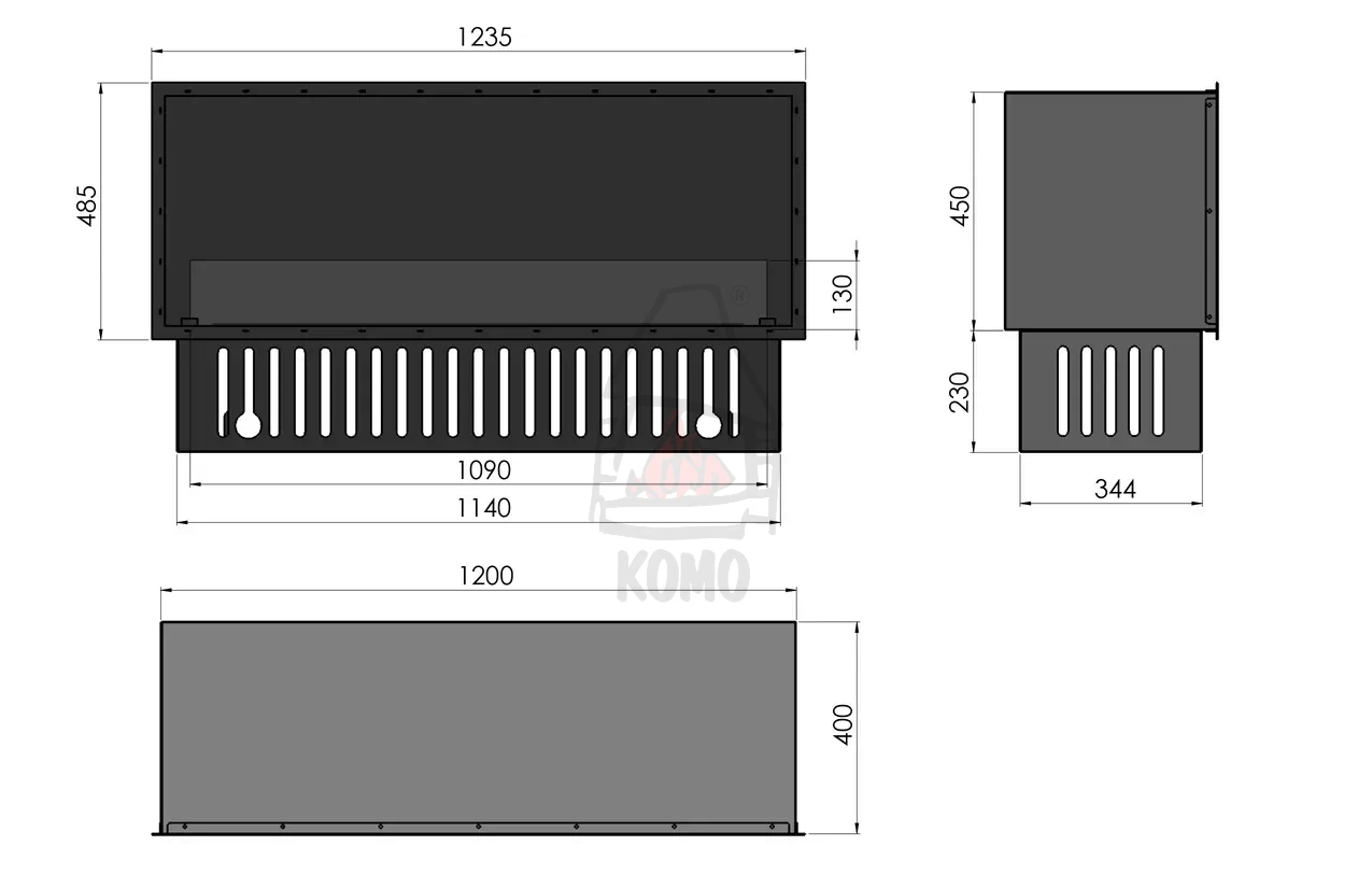 | Wymiary paleniska (szer. x wys.) | 995 x 45 mm |