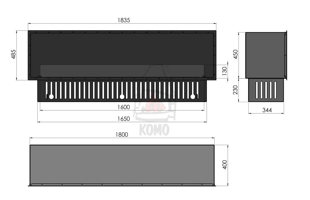 | Wymiary paleniska (szer. x wys.) | 1490 x 45 mm |