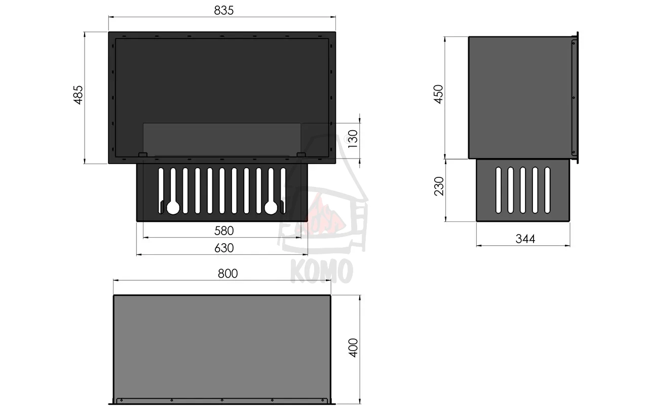 | Wymiary paleniska (szer. x wys.) | 495 x 45 mm |