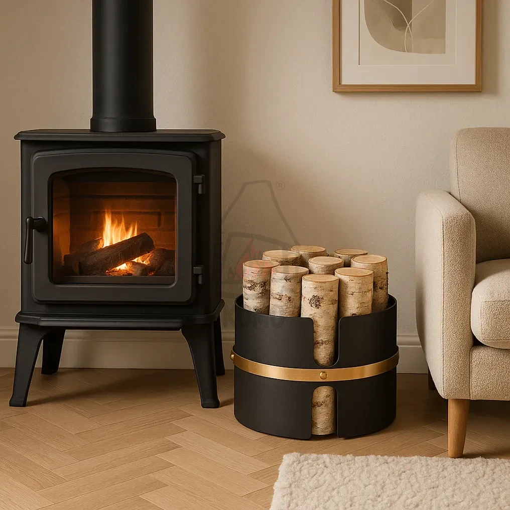 Poznaj DARCO AERO 5, okrągły kosz na drewno z elementami mosiądzu, który wzbogaca wymiar praktyczny o nutę wyrafinowanego designu. To perfekcyjne rozwiązanie dla tych, którzy sporadycznie palą w kominku lub piecu, posiadają mniejszy metraż lub po prostu cenią nietuzinkowy wygląd.