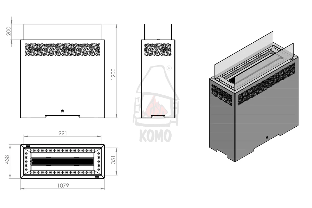 Całość konstrukcji jest wykonana ze stali lakierowanej na kolor biały, a palnik i elementy mające bezpośredni kontakt z ogniem ze stali kotłowej P265GH odpornej na duże wahania temperatury, pokrytej warstwą antykorozyjną (ocynk), a następnie pomalowanej wysokotemperaturową farbą kominkową.