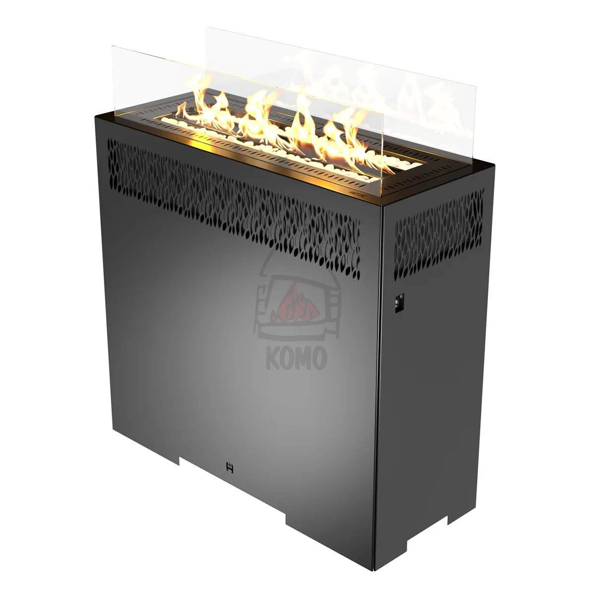 Całość konstrukcji jest wykonana ze stali lakierowanej na kolor czarny, a palnik i elementy mające bezpośredni kontakt z ogniem ze stali kotłowej P265GH odpornej na duże wahania temperatury, pokrytej warstwą antykorozyjną (ocynk), a następnie pomalowanej wysokotemperaturową farbą kominkową.