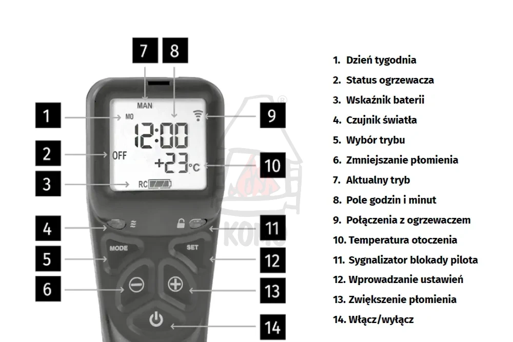 - możliwość dokupienia pilota zdalnego sterowania z funkcją termostatu