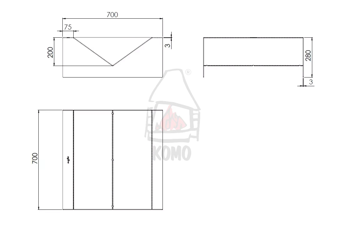 Konstrukcja została wykonana z wytrzymałej stali o grubości 3 mm, pokrytej farbą proszkową. Takie rozwiązanie zapewnia odporność na wysoką temperaturę oraz codzienne użytkowanie. Matowe, czarne wykończenie podkreśla nowoczesny charakter paleniska i sprawia, że z łatwością dopasowuje się ono do współczesnych przestrzeni zewnętrznych.