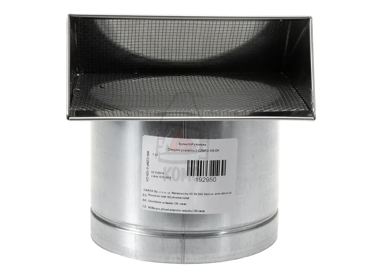Okrągła czerpnia powietrza DARCO II CZNP-II-CH zabezpiecza wlot lub kanału okrągłego w systemie wentylacji.
