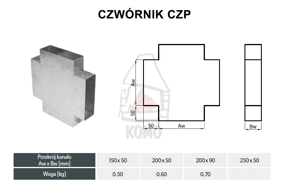 Czwórnik DARCO CZP-OC został wykonany z blachy ocynkowanej i jest odporny na temperaturę do 250ºC.
