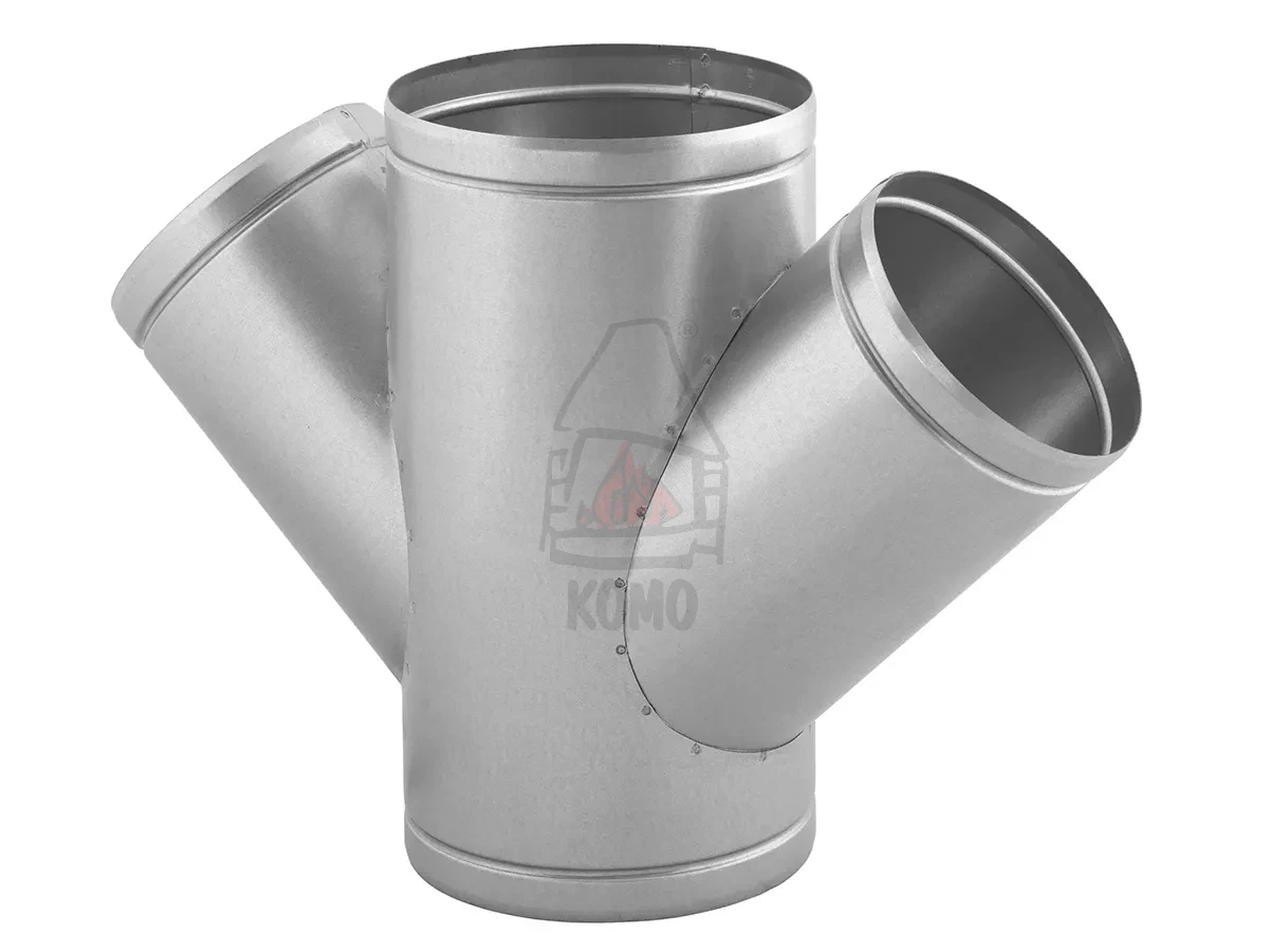 Czwórnik okrągły DARCO CZO/45-OC umożliwia przejście z kanału głównego do trzech odnóg systemu dystrybucji gorącego powietrza lub wentylacji. Kanały boczne są usytuowane pod kątem 45º w stosunku do kanału wlotowego (głównego).