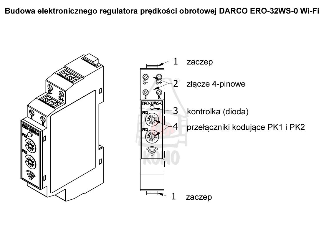 Elektroniczny Regulator Obrotów ERO-32WS-0 do TH,THP (Wi-Fi) (wersja na szynę TS-35)