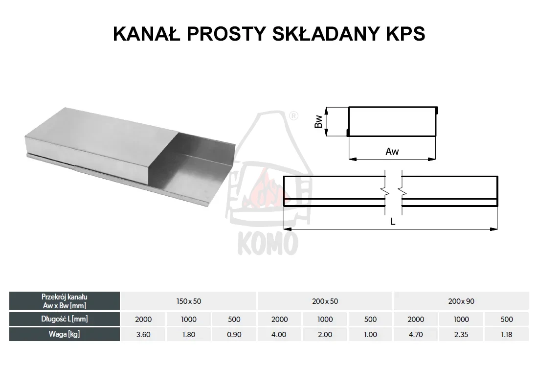 Kanał prostokątny składany KPS200x50/1000-OC