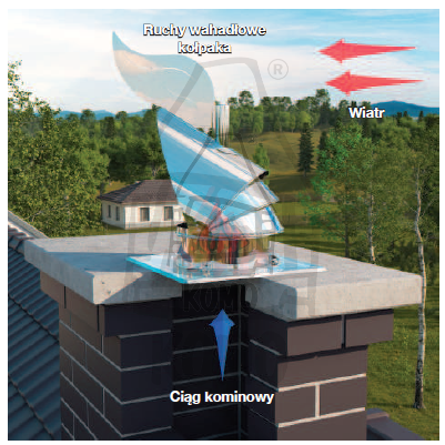 - kiedy występują zawirowania powietrza na wylocie komina spowodowane jego niekorzystnym usytuowaniem