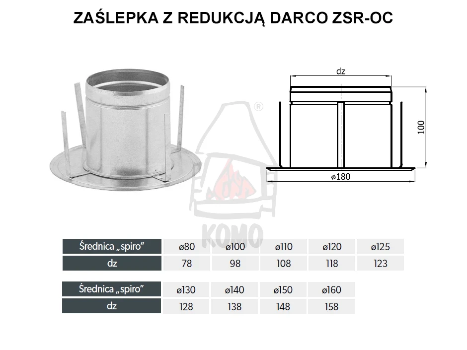W ofercie dostępne są zaślepki DARCO ZSR-OC do rur Spiro o średnicach: ø 80, 100, 110, 120, 125,130, 140, 150 i 160 mm.