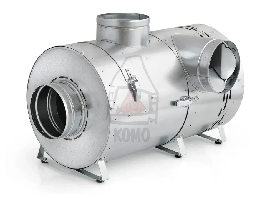 - ogranicza temperaturę gorącego powietrza płynącego z kominka przez zasysanie dodatkowego, chłodnego powietrza z otoczenia