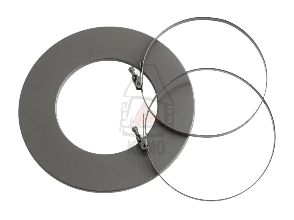 Zestaw podłączeniowy DARCO REP-125-SET-ML-SZ służy do podłączania rur elastycznych DARCO REP-AL-ML-SZ, wykorzystywanych w systemach doprowadzania świeżego powietrza do wkładu kominkowego i systemach wentylacji. Składa się z szarej rozety i dwóch opasek zaciskowych.