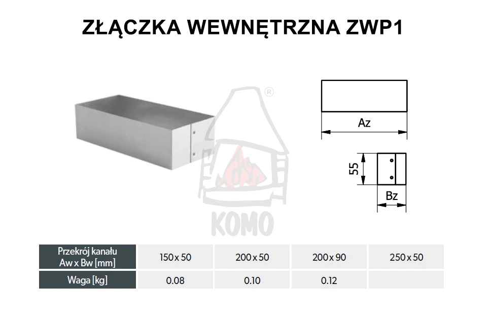 Złączka wewnętrzna DARCO ZWP1-OC służy do łączenia prostokątnych elementów systemu wentylacji oraz dystrybucji gorącego powietrza (DGP).