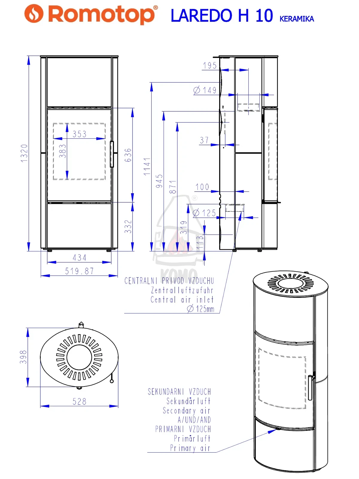 Dane techniczne - piec ROMOTOP LAREDO H 10 ceramika