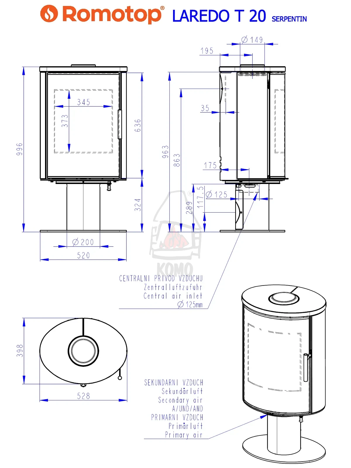 Szczegółowe dane techniczne - piec ROMOTOP LAREDO T 20 kamień