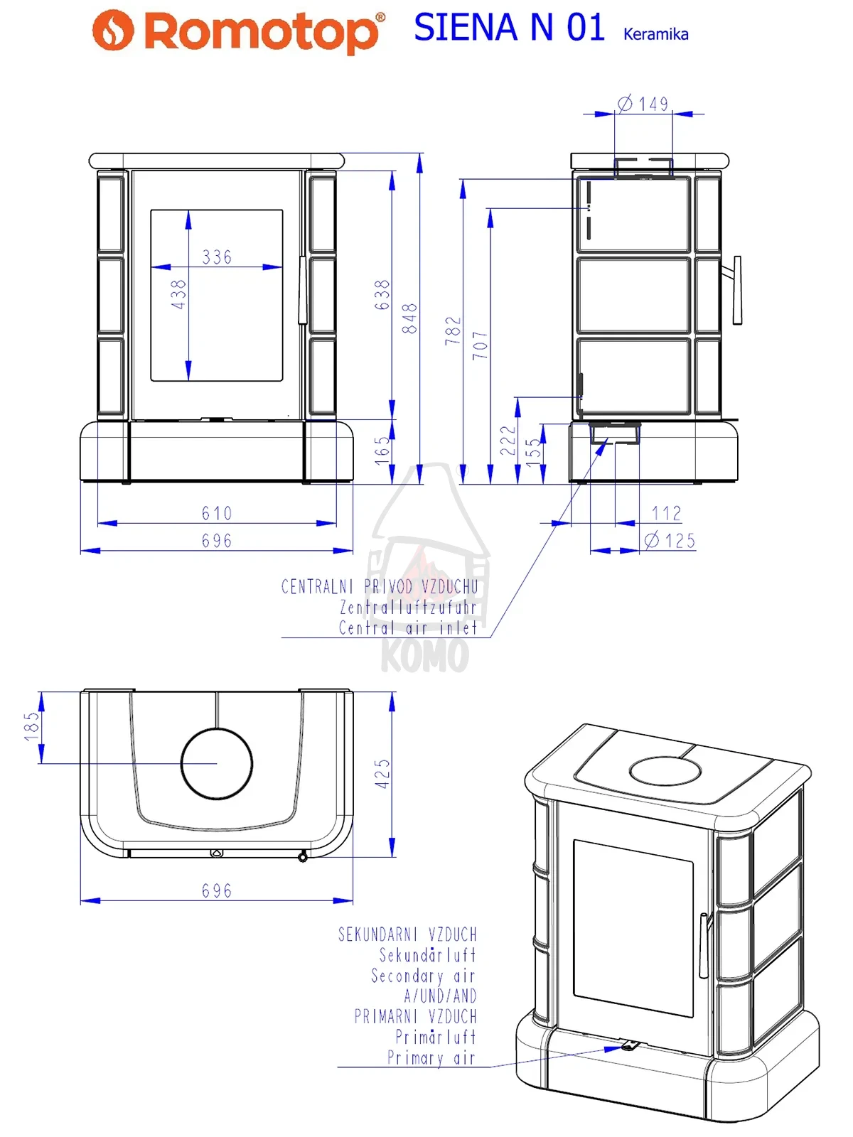 ROMOTOP SIENA N 01 to niewielki piec kaflowy z centralnym doprowadzeniem powietrza zewnętrznego do komory spalania, dzięki czemu z powodzeniem można go instalować w domach z rekuperacją.