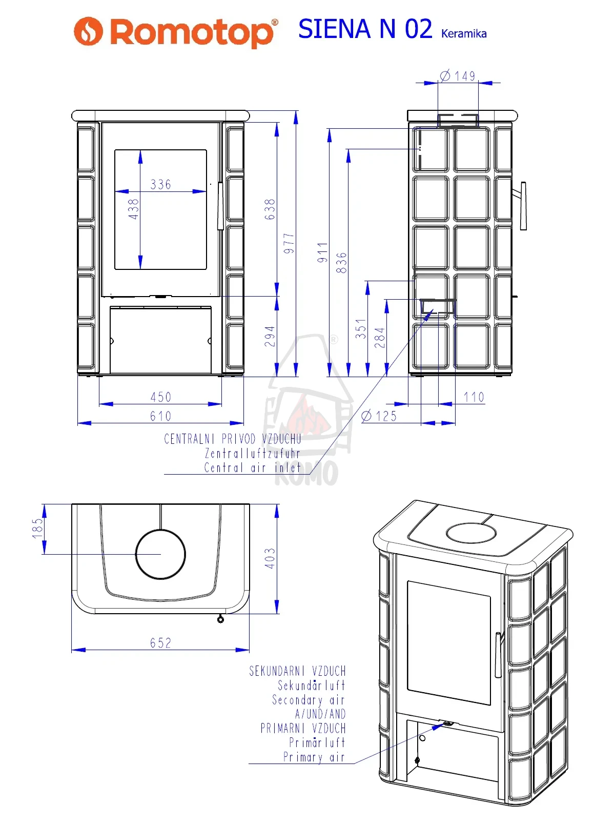 ROMOTOP SIENA 02 to piec kaflowy z centralnym doprowadzeniem powietrza zewnętrznego do komory spalania, dzięki czemu z powodzeniem można go instalować w domach z rekuperacją.