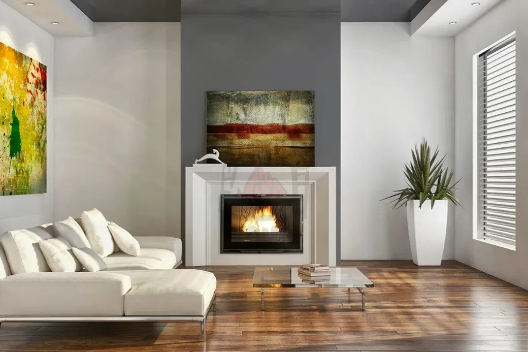 INVICTA 9285-85-DP to wkład kominkowy z szybą płaską ozdobioną czarnym nadrukiem, o mocy nominalnej 10 kW i wydajności 76%, z bezpośrednim dolotem powietrza zewnętrznego. Palenisko jest wykonane z żeliwa - materiału idealnego do produkcji urządzeń grzewczych z uwagi na swoją twardość, odporność na korozję, wysokie temperatury, doskonałą przewodność termiczną oraz elastyczność stopu, która pozwala otrzymywać odlewy o bardzo gładkiej powierzchni oraz 100% przystosowanie do recyclingu.